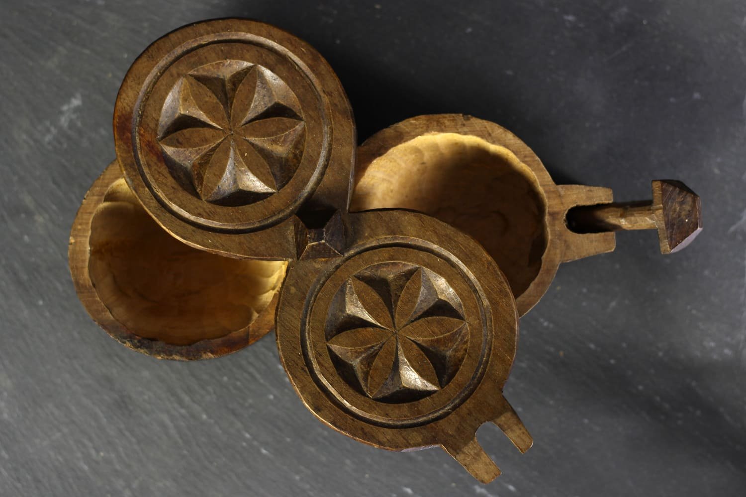 Taillées dans un bois noble patiné par le temps, elles arborent sur leur couvercle une rosace délicatement ciselée,