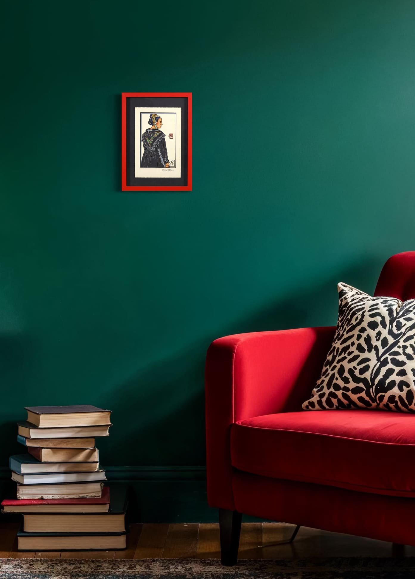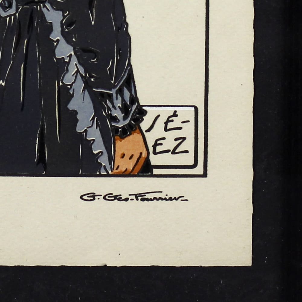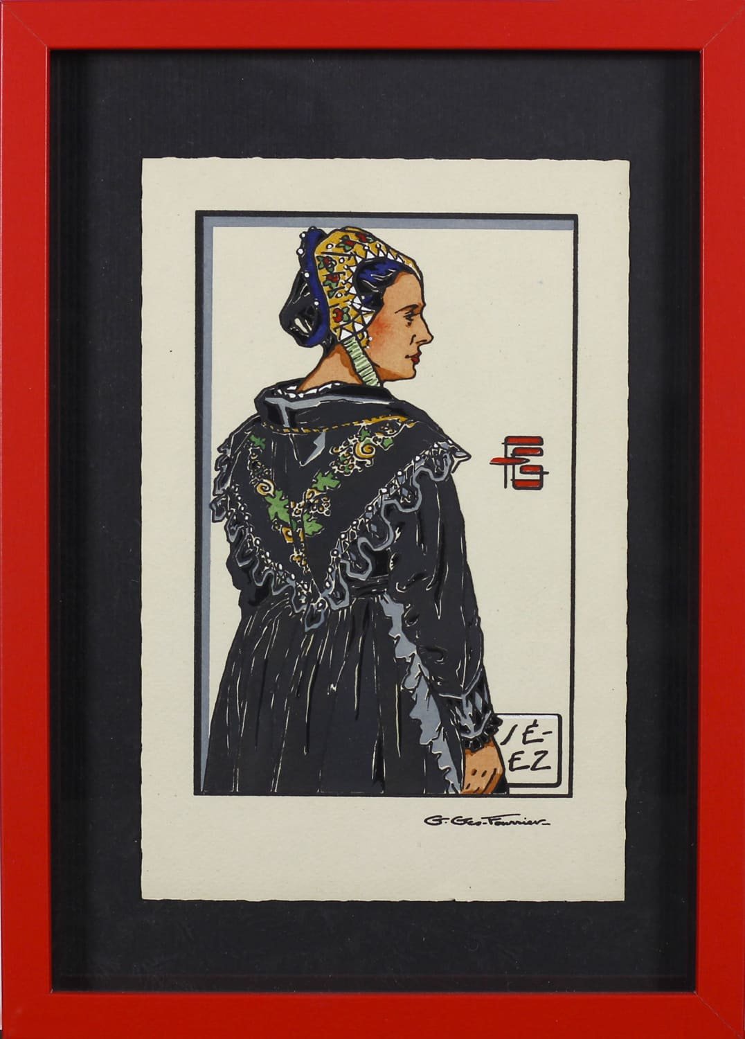 La composition épurée témoigne du travail documentaire de Fourrier sur les costumes régionaux.