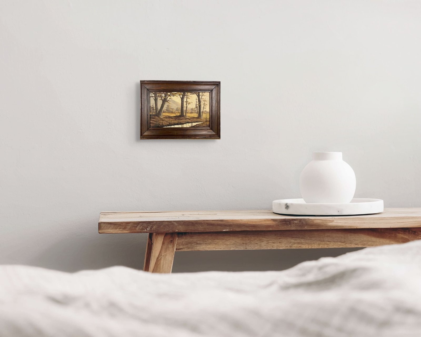 La palette aux tonalités chaudes et dorées évoque une lumière automnale délicate,