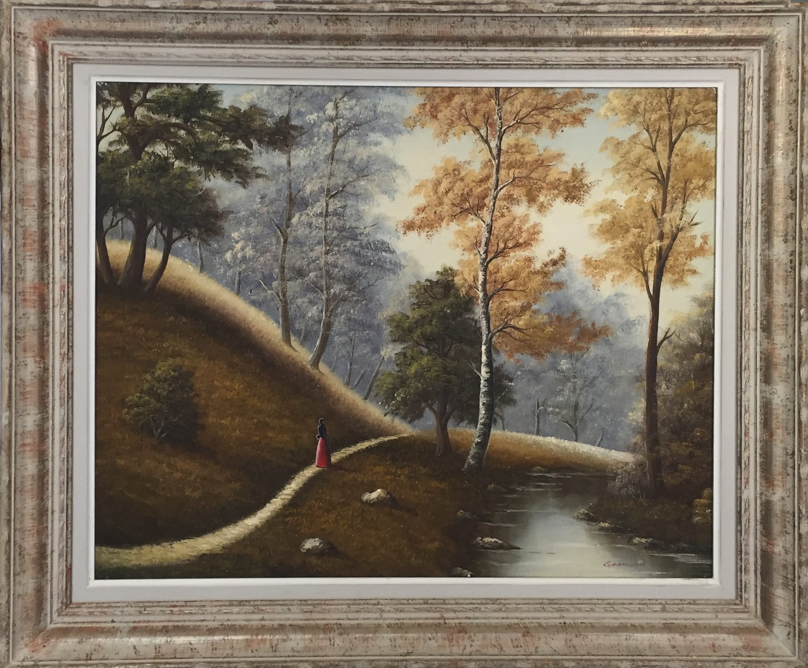 GRAMHAM huile sur toile « Promeneuse en Forêt »