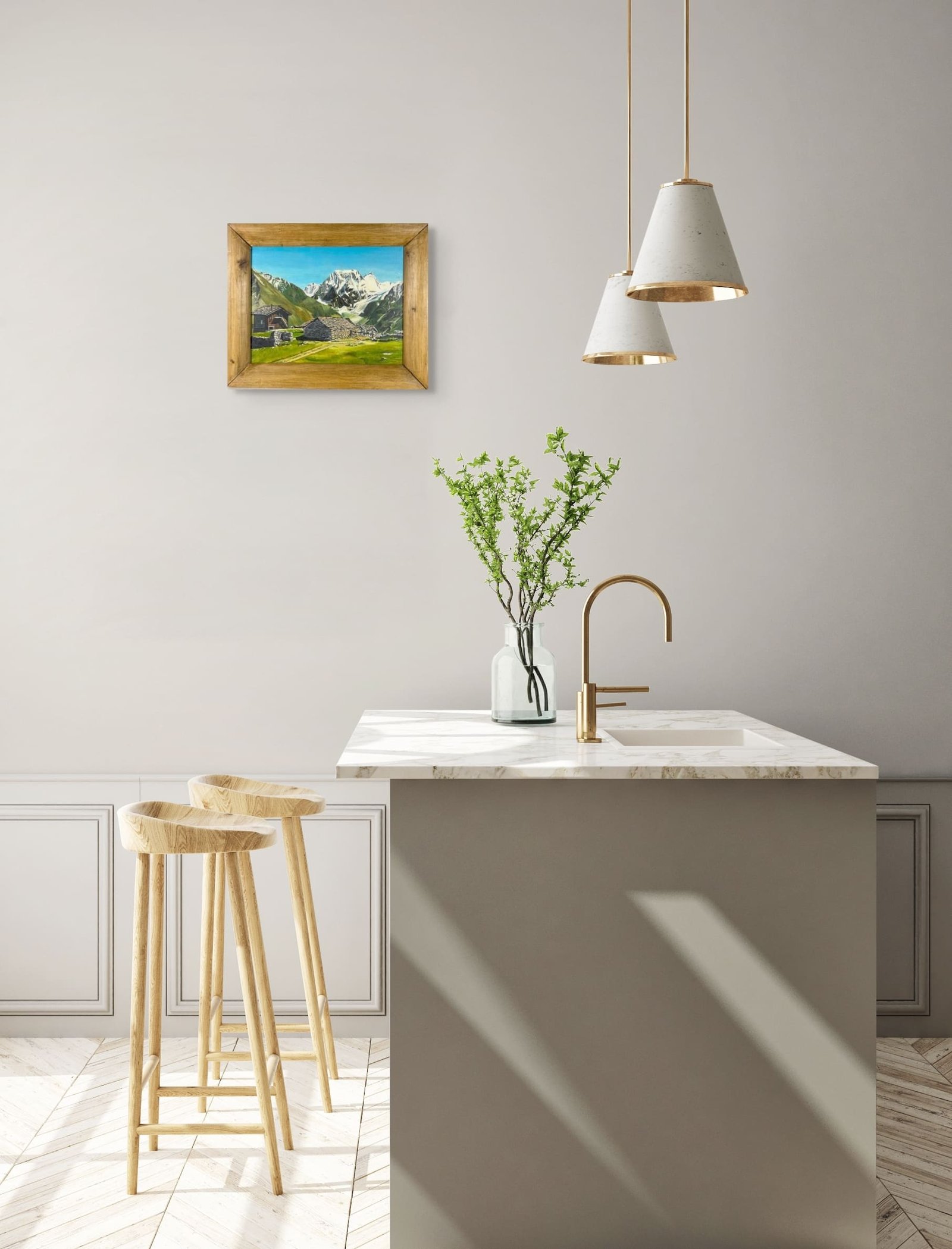 Huile sur bois « Chalets Alpins »