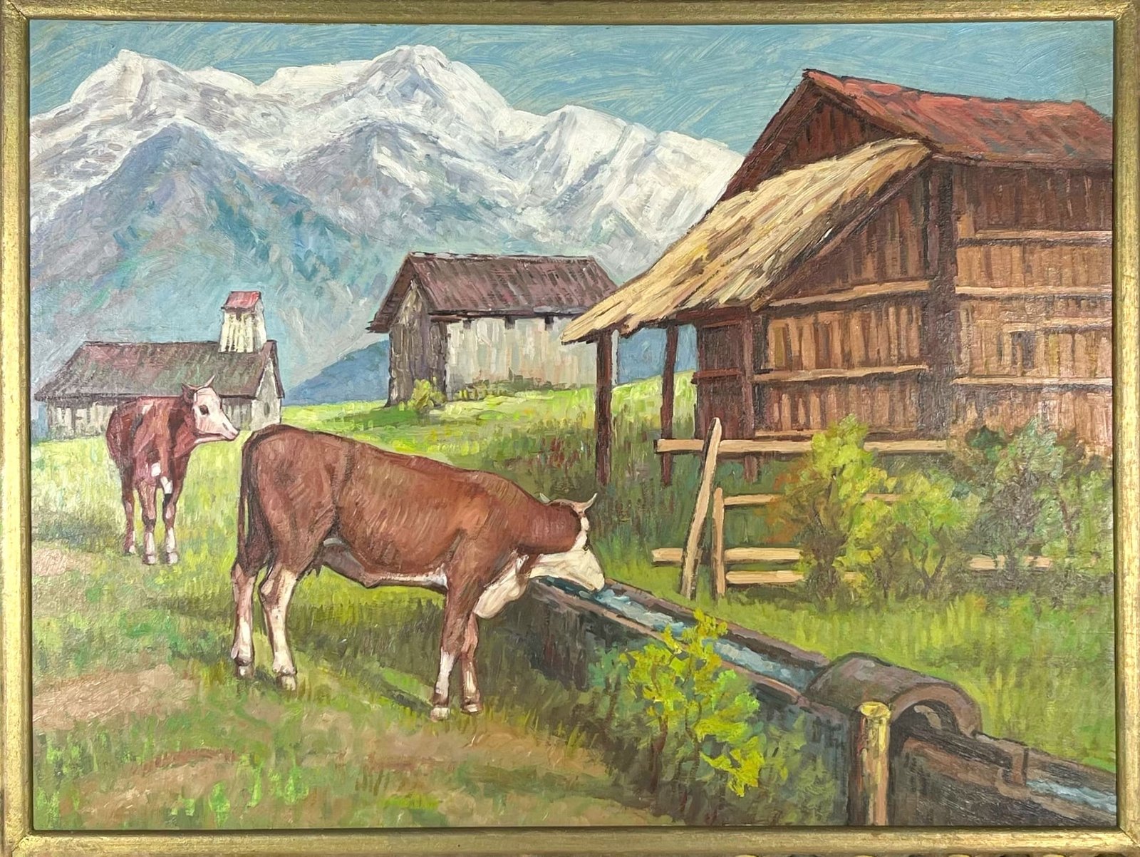 Huile sur toile VON BERGH « Vaches au pieds du Mont Blanc »