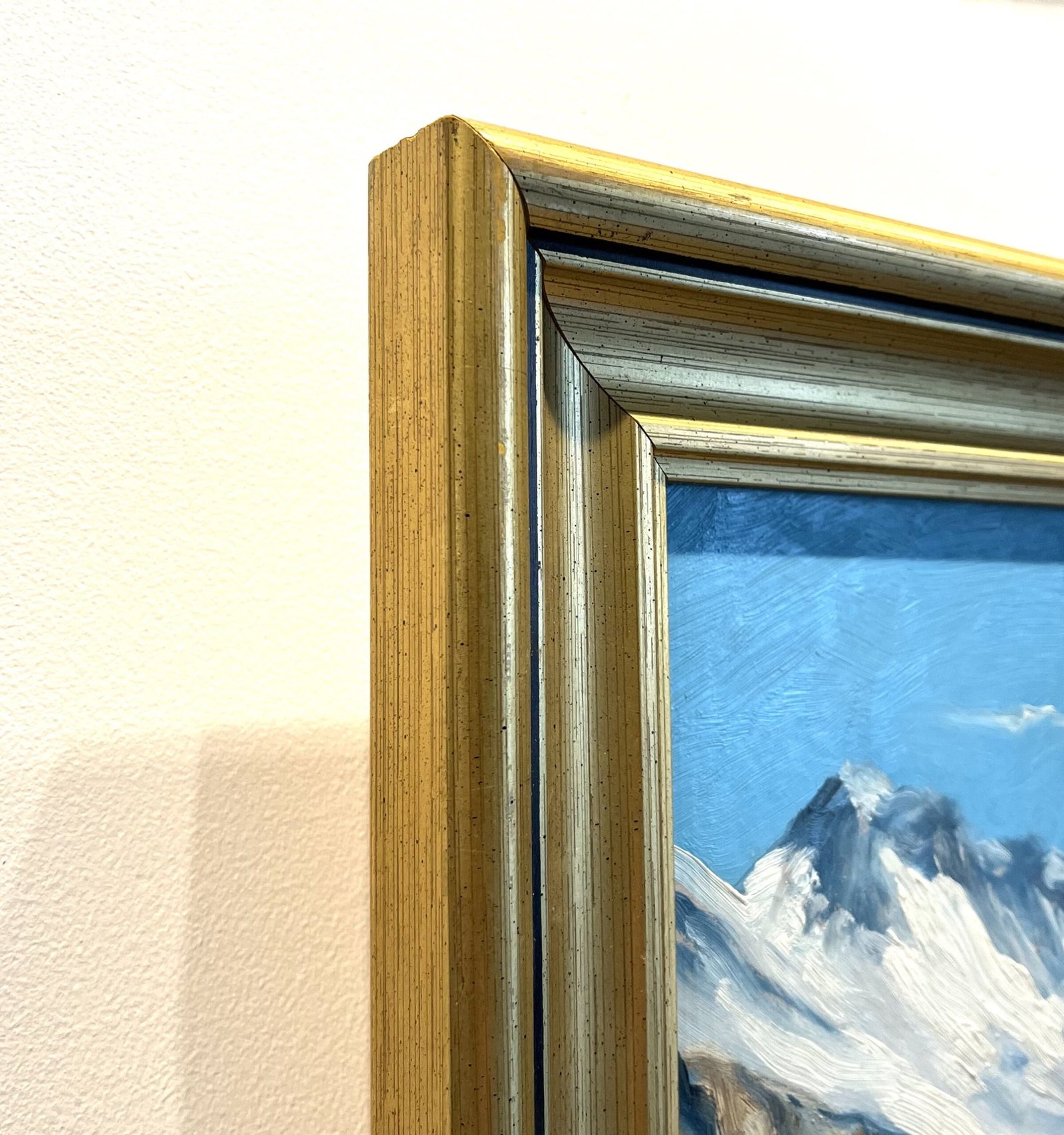 La touche picturale, généreuse et maîtrisée, traduit l'atmosphère lumineuse d'un jour d'hiver en montagne.