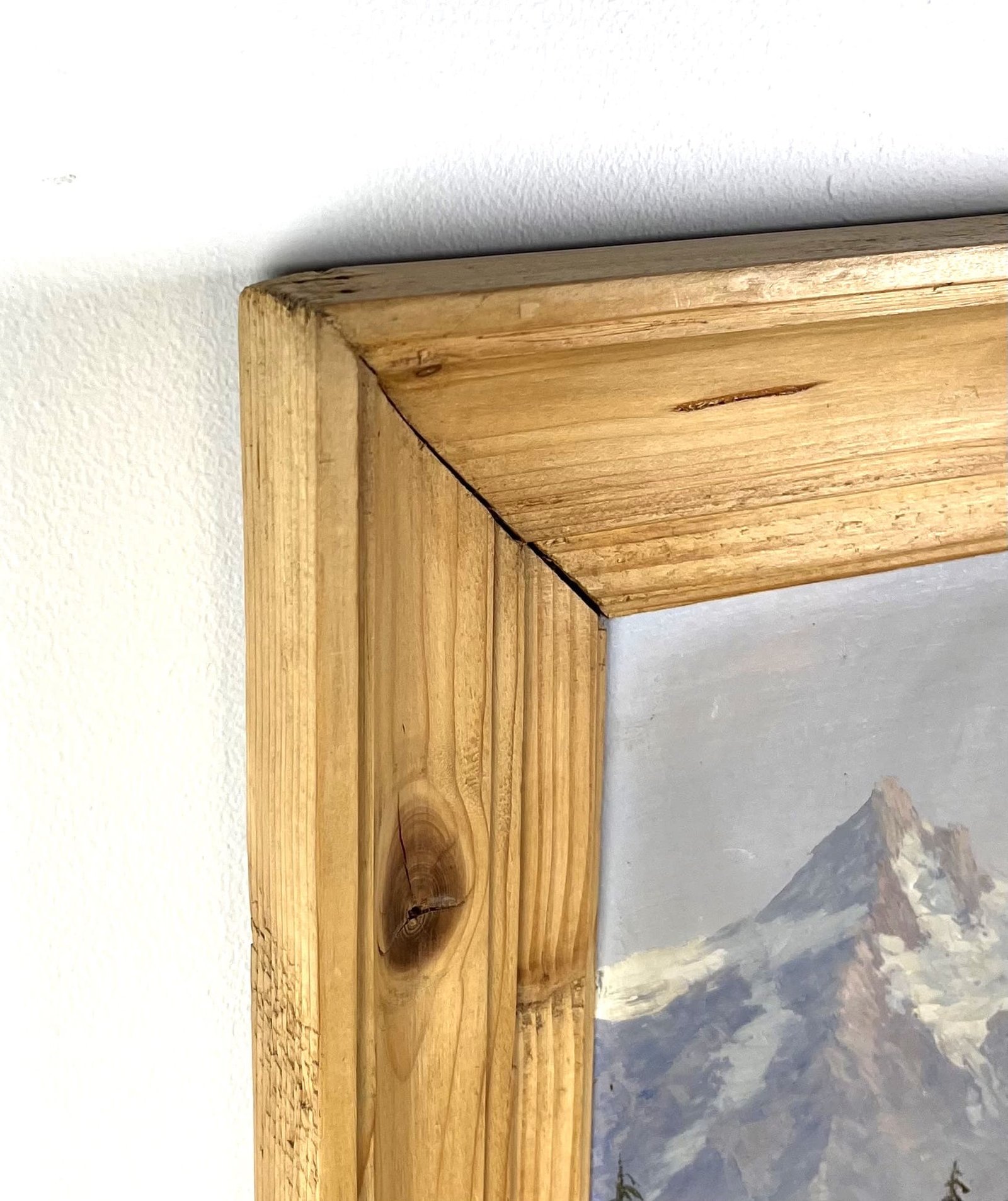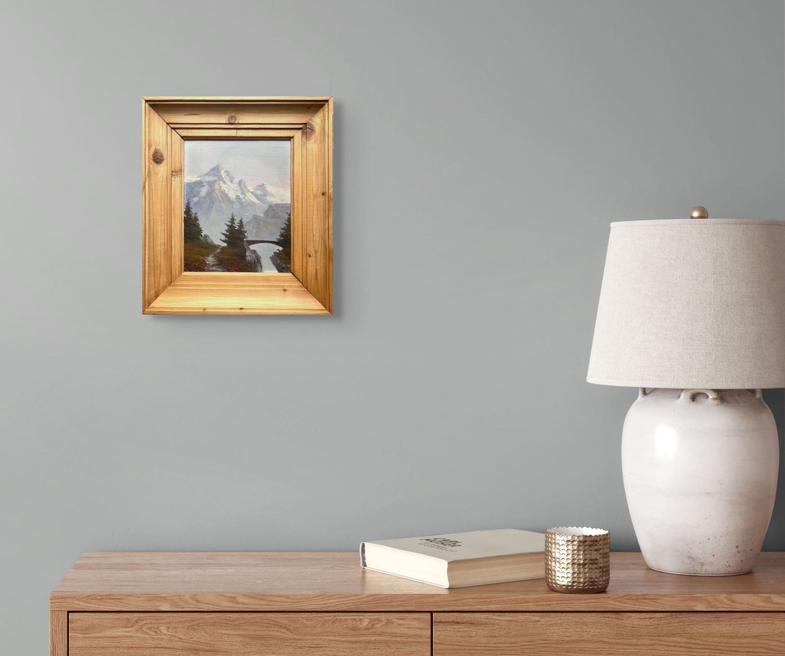prolonge harmonieusement l'esprit rustique et contemplatif de cette peinture de paysage traditionnel alpin.