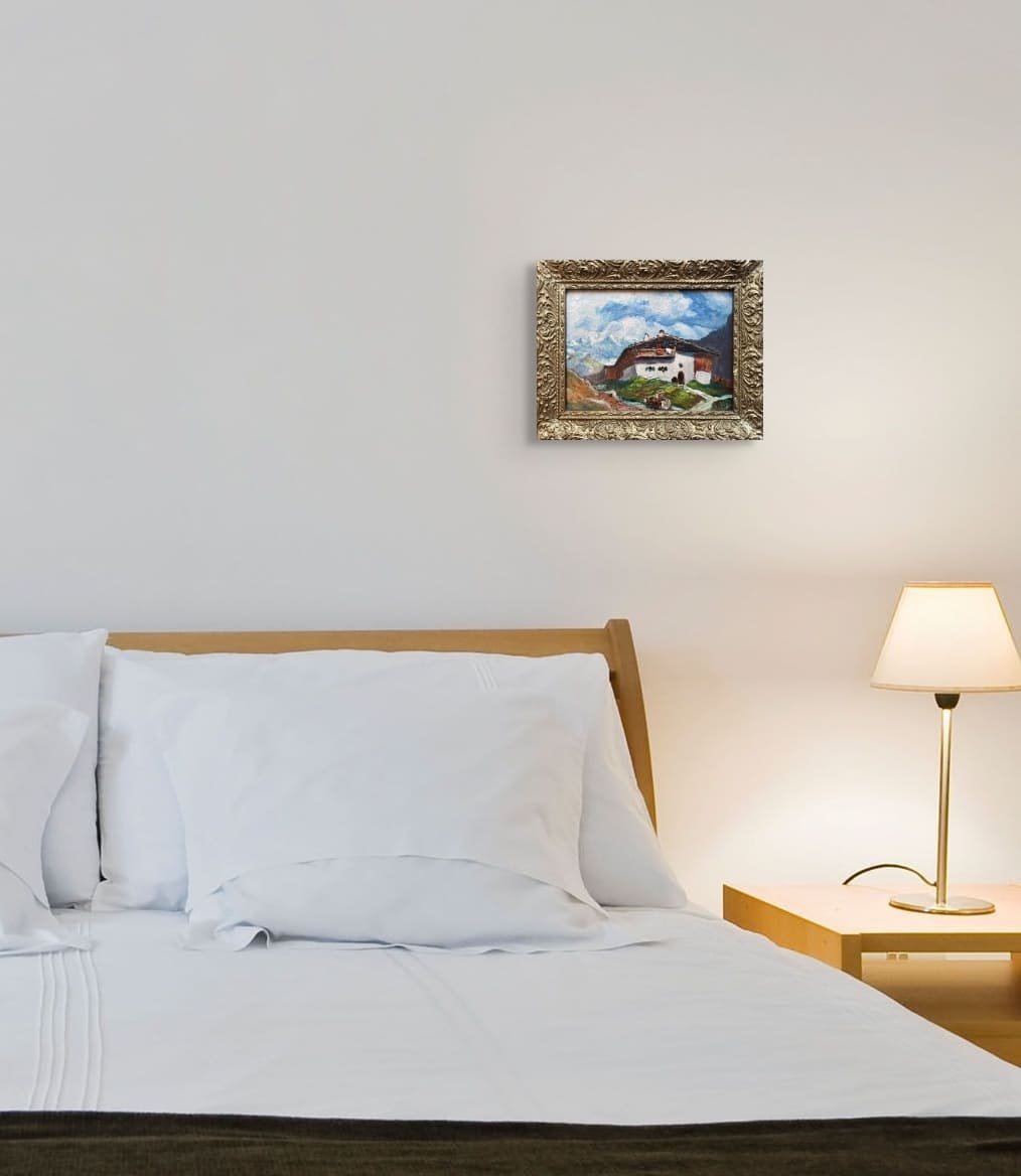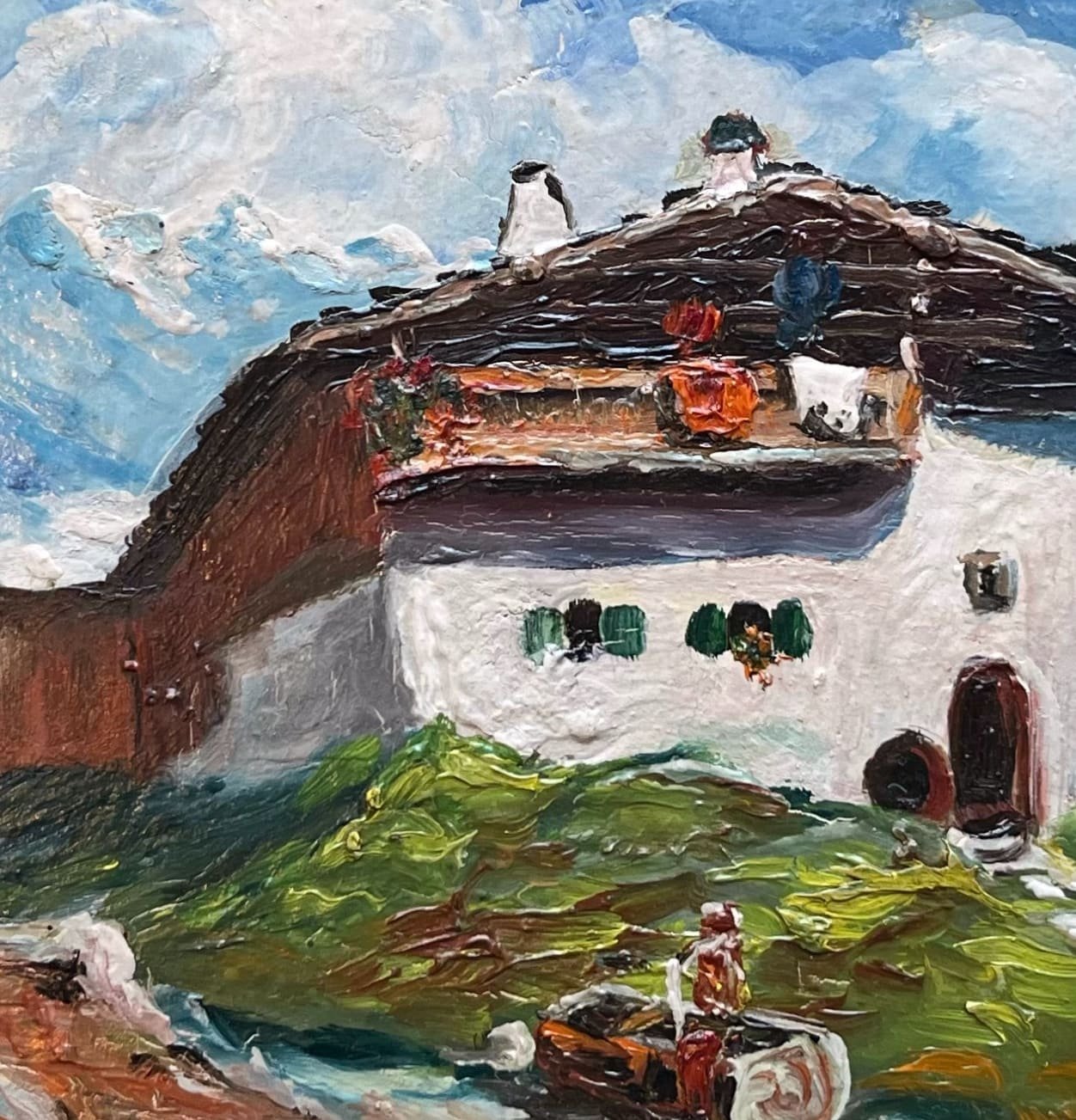 où la matière généreuse et les empâtements sculptent le volume du chalet traditionnel.