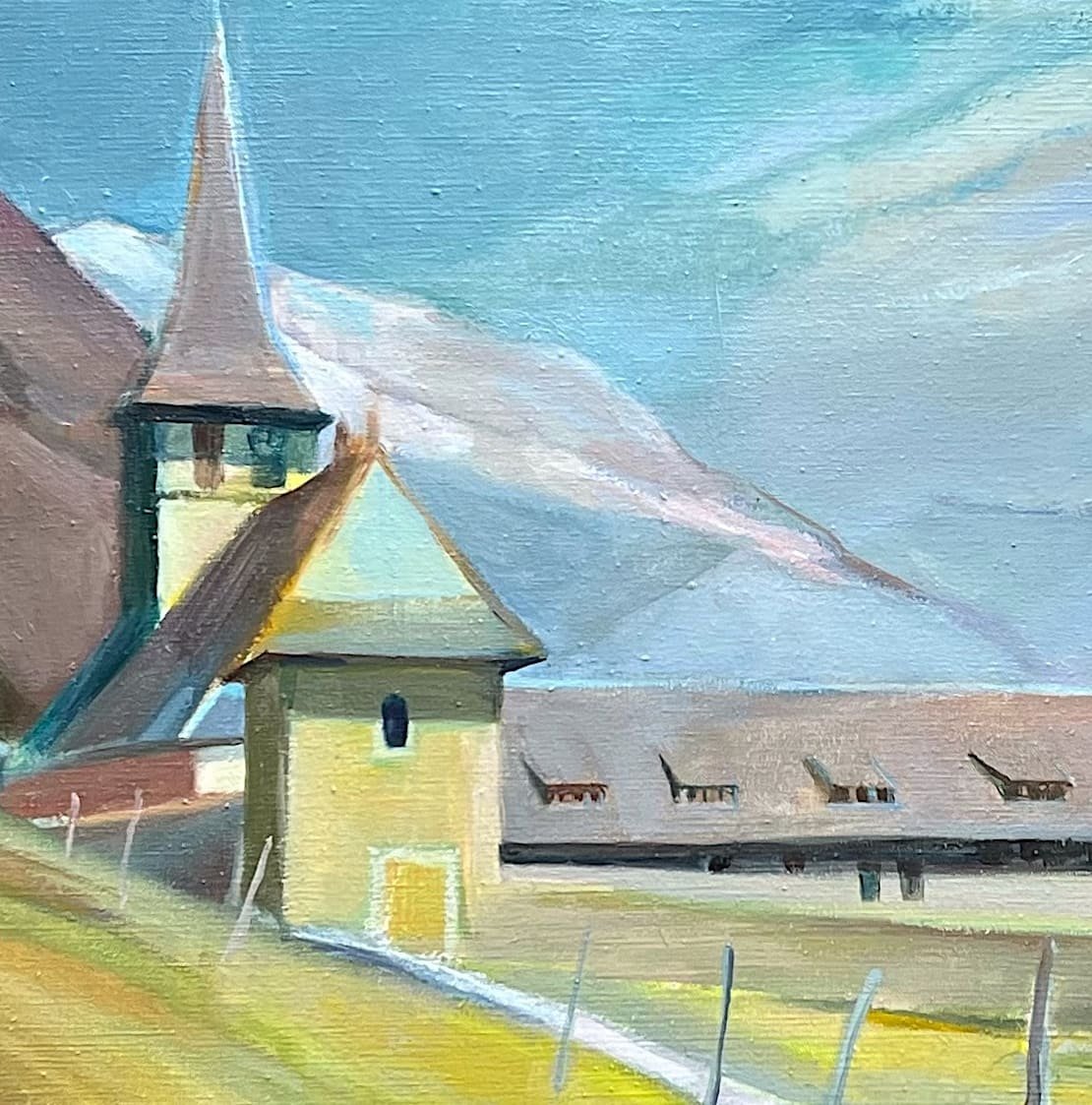 Cette huile sur toile capture avec sensibilité le monastère de Chalais niché au pied du massif de la Chartreuse.