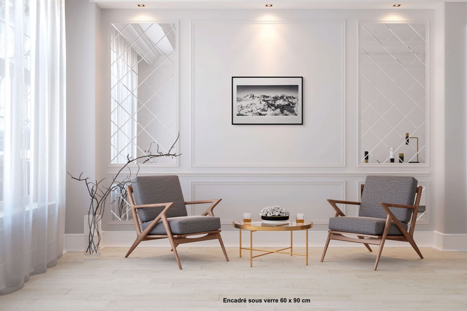 > Tirage encadré sous verre avec passe partout au format 60 x 90 cm