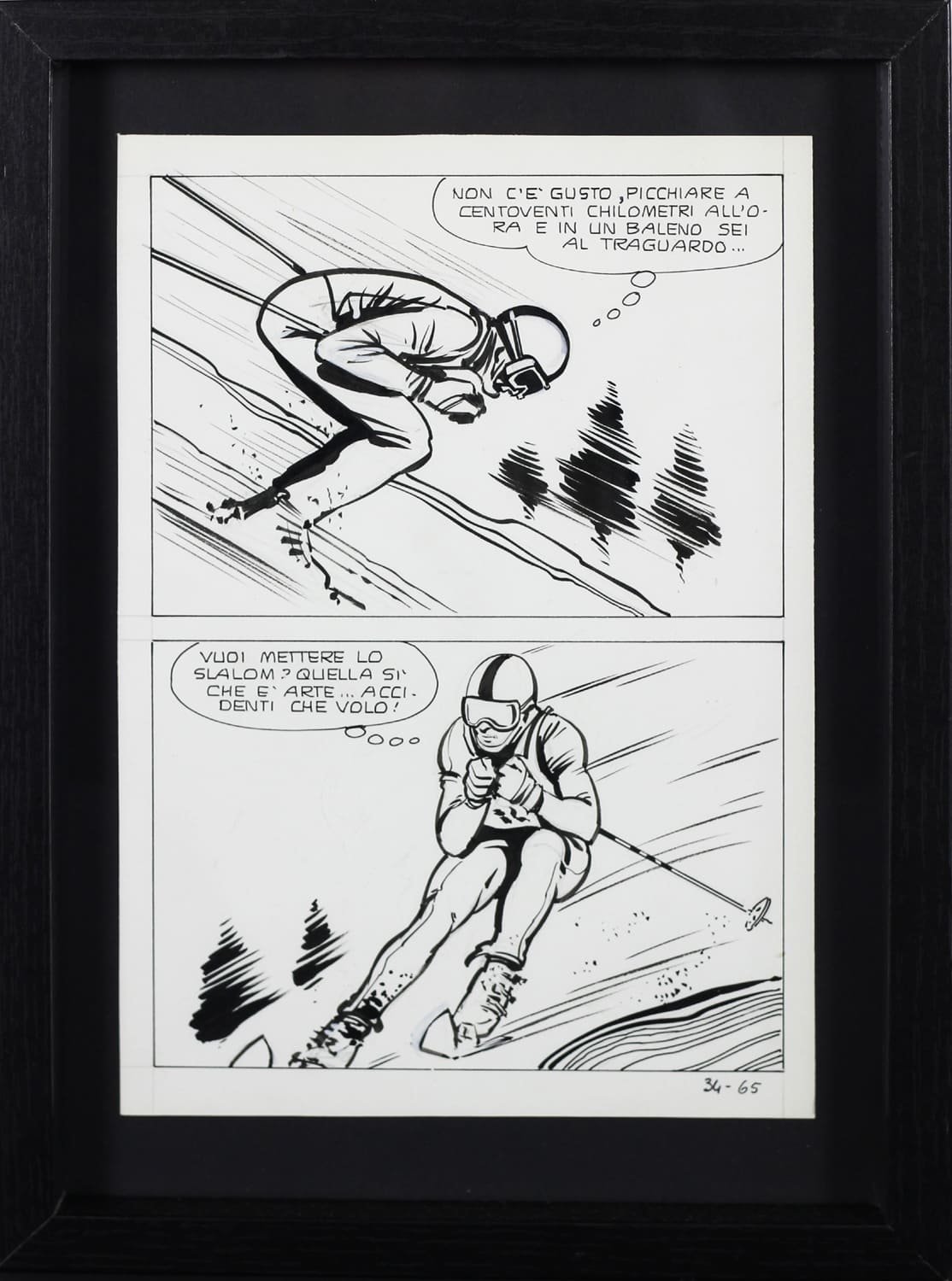 planche originale de bande dessinée "La Tragédie d'un Skieur" signée Fatti OGGI.