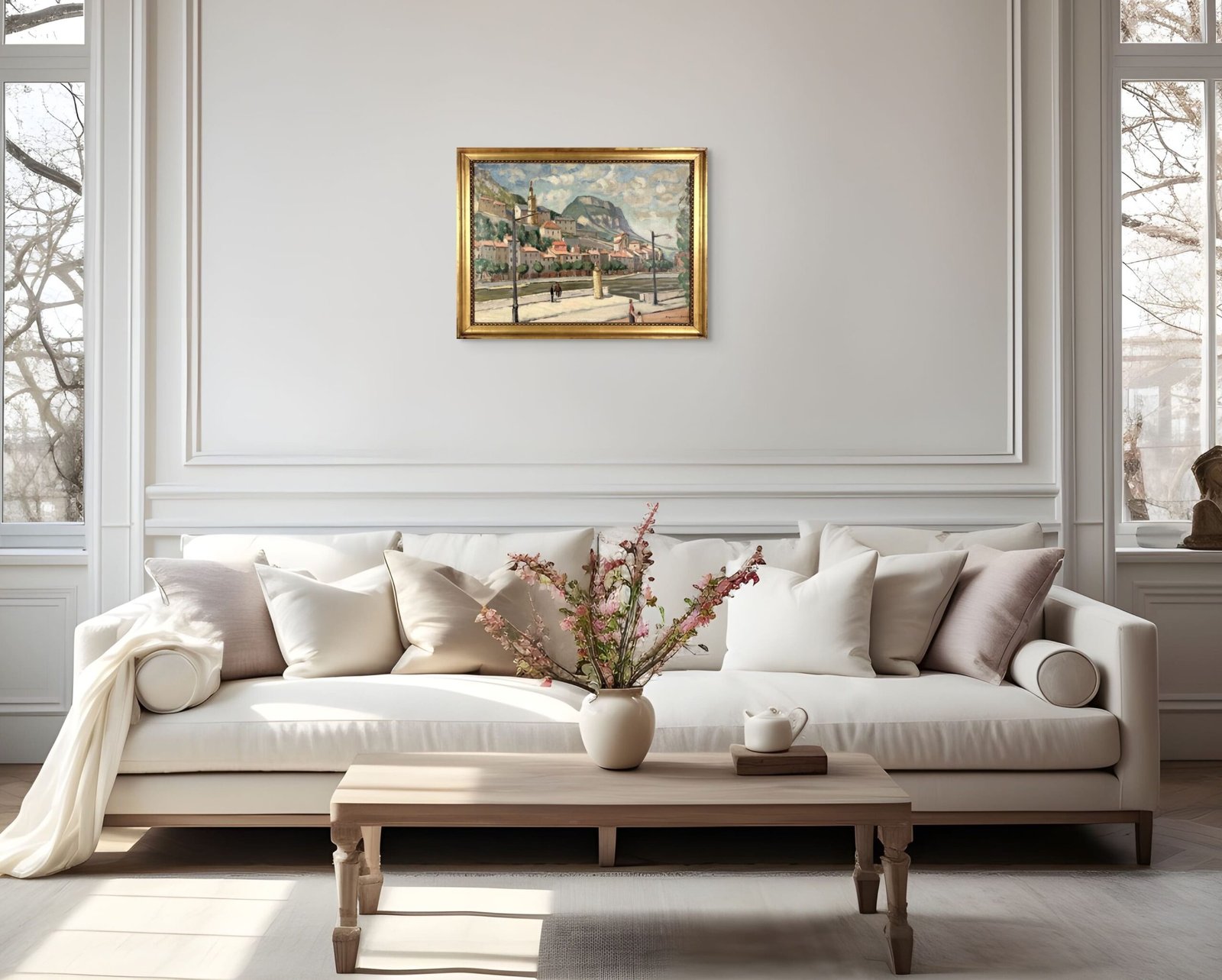 cette œuvre représente un témoignage significatif de la peinture de paysage urbain alpin du milieu du XXe siècle.