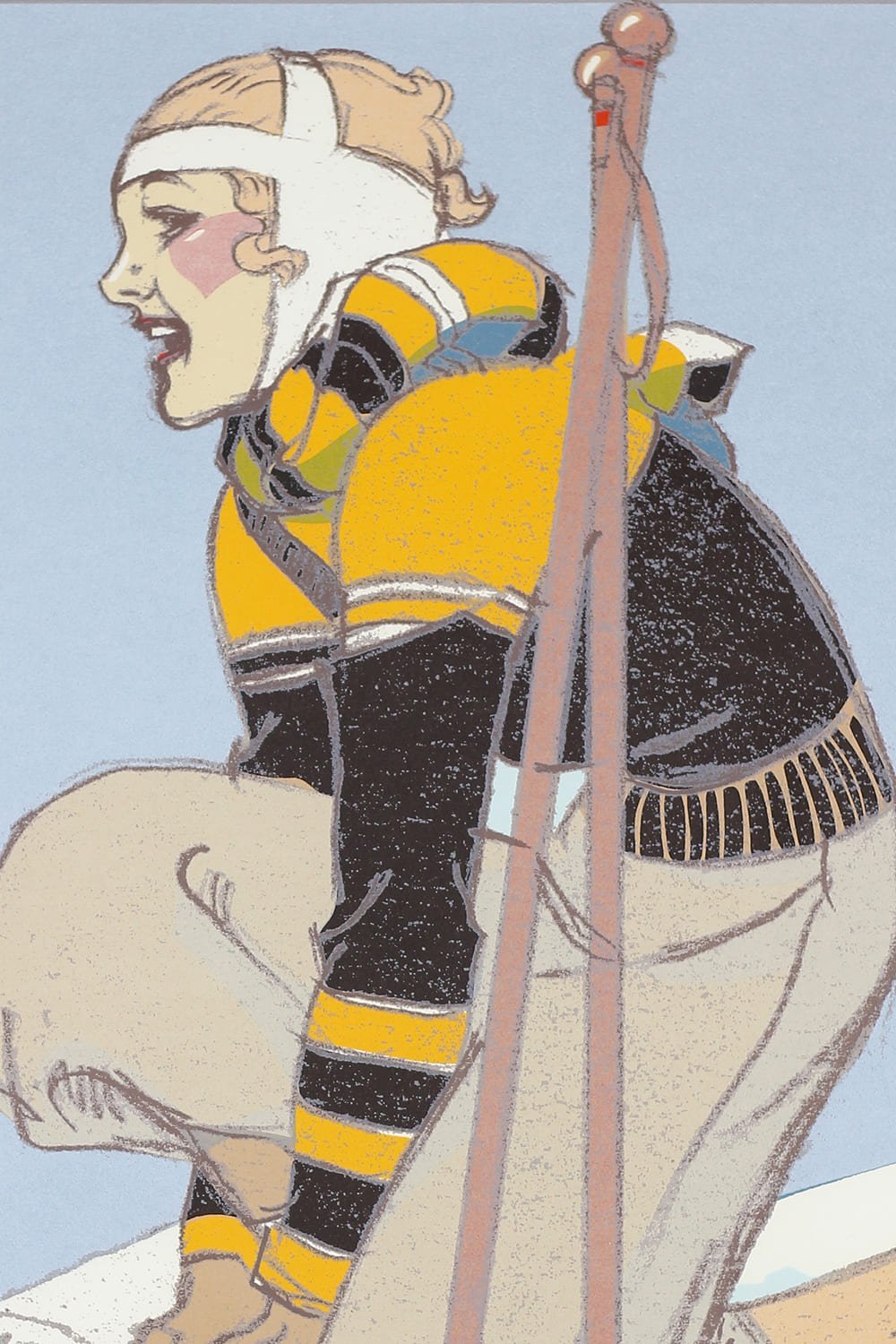 Cette œuvre témoigne de la démocratisation du ski comme activité mondaine dans l'entre-deux-guerres.