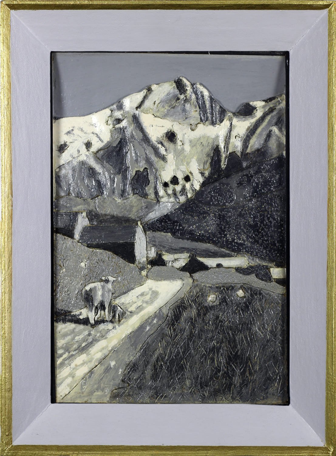 L'encadrement sous verre, massif et simple met parfaitement en valeur cette scène alpine.