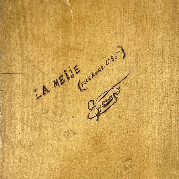 Cette œuvre rare et remarquable présente une vue de la Meije, sommet emblématique de l'Oisans dans les Alpes françaises.