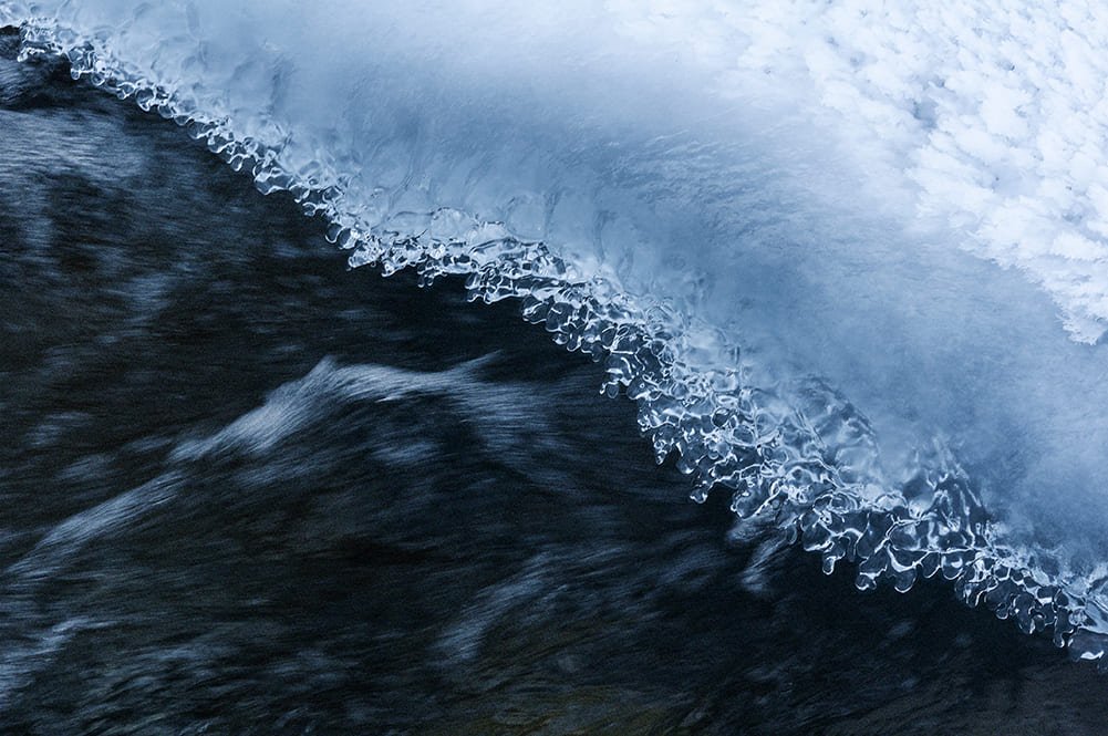 « Les photographies ici présentes, exposent quelques états que peut revêtir l’eau ; sa fragilité quand elle est de glace, sa force quand elle est en mouvement, ses couleurs quand elle se mêle au ciel, son élégance quand elle compose. Artiste plasticienne, l’eau joue avec les humeurs du Ciel et de la Terre. »